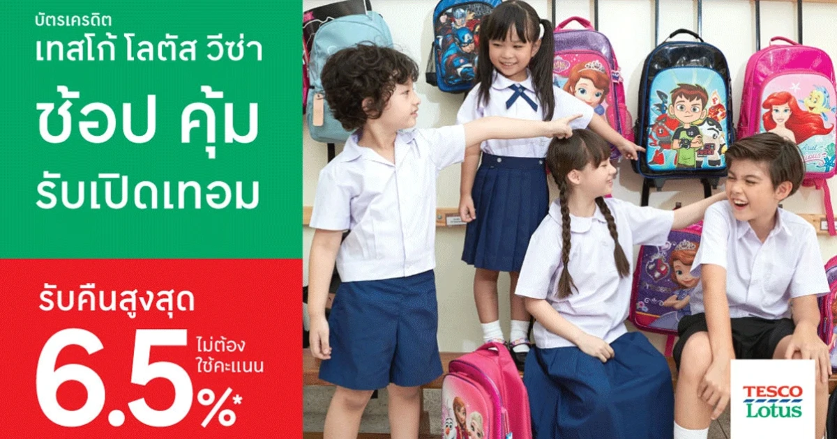 ช้อป สนุก สุดคุ้ม รับเปิดเทอม ที่เทสโก้ โลตัส พร้อมรับเครดิตเงินคืนสูงสุด 6.5%* (ไม่ต้องใช้คะแนน)