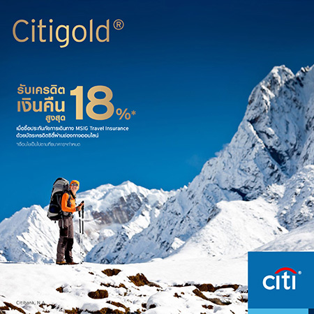 - คุ้มครองดูแลทุกก้าวของการเดินทาง ด้วยประกันภัยต่างประเทศ - รับเครดิตเงินคืนสูงสุดถึง 18% เมื่อซื้อประกันภัยการเดินทางออนไลน์ผ่าน MSIG ด้วยบัตรเครดิตซิตี้ ให้ลูกค้าสามารถใช้ชีวิตได้อย่างเต็มที่กับไลฟ์สไตล์ในระหว่างการเดินทางอย่างอุ่นใจ