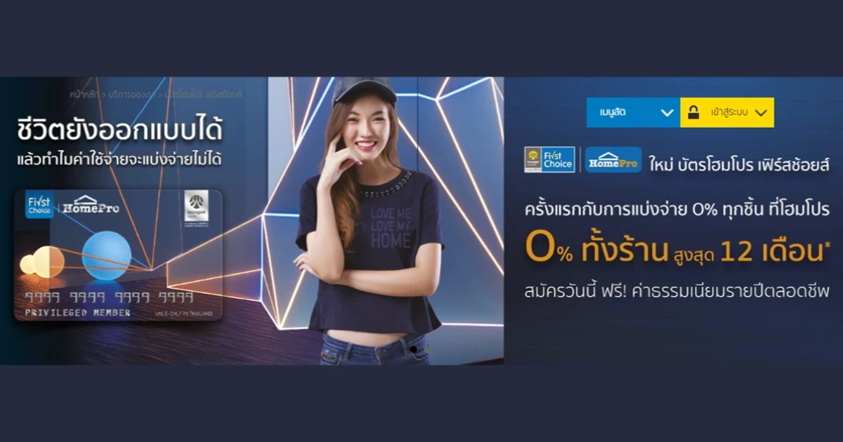 - สำหรับลูกค้าที่สมัครบัตรโฮมโปร เฟิร์สช้อยส์ ที่เป็นบัตรใหม่เฉพาะบัตรหลักที่ได้รับอนุมัติ ตั้งแต่วันที่ 8 มี.ค. - 31 พ.ค. 2562 และมียอดผ่อนสินค้าตั้งแต่ 5,000 บาทขึ้นไป / ใบเสร็จ ณ โฮมโปร ทุกสาขา ภายใน 45 วัน นับจากวันอนุมัติ (ไม่รวมการกดเงินสด) รับกระเป๋ายี่ห้อ GAP จำนวน 1 ใบ มูลค่า 2,990 บาท