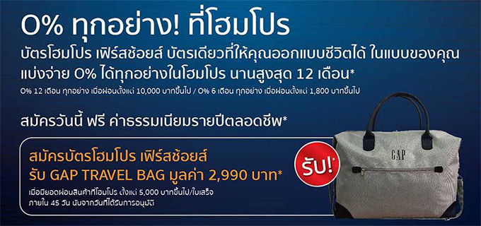 สมัครบัตรโฮมโปร เฟิร์สช้อยส์! รับกระเป๋า GAP Travel