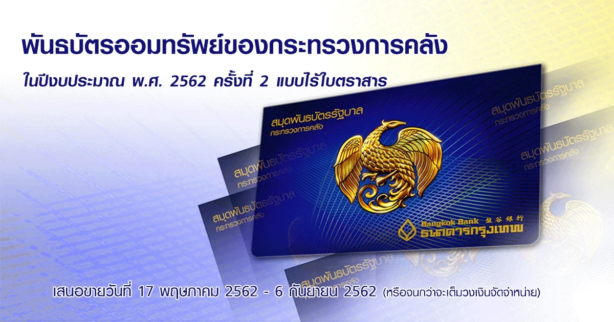 ลงทุนอย่างมั่นใจกับพันธบัตรออมทรัพย์ของกระทรวงการคลัง ในปีงบประมาณ พ.ศ. 2562 ครั้งที่ 2 แบบไร้ใบตราสาร