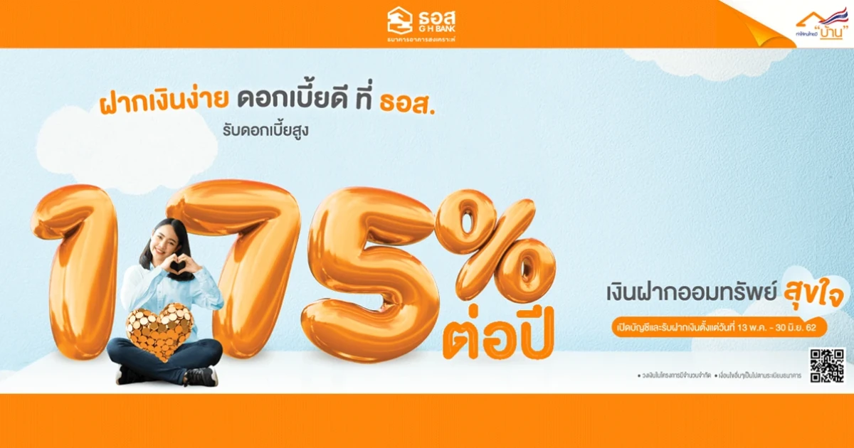 ฝากเงินง่าย ได้ดอกเบี้ยดี กับบัญชีเงินฝากออมทรัพย์สุขใจ จาก ธนาคารอาคารสงเคราะห์ ให้ดอกเบี้ยสูงแบบขั้นบันได จ่ายดอกเบี้ยปีละ 2 ครั้ง
