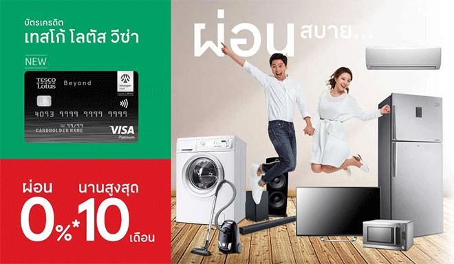 บัตรเครดิตเทสโก้ โลตัส วีซ่า ผ่อนเครื่องใช้ไฟฟ้าภายในบ้านทุกชิ้นไร้ดอก 0%*