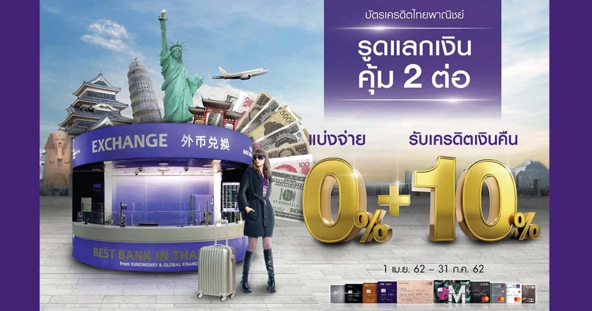 บัตรเครดิตไทยพาณิชย์ รูดแลกเงินคุ้ม 2 ต่อ แบ่งจ่าย 0% นานสูงสุด 4 เดือน* + รับเครดิตเงินคืน 10%*