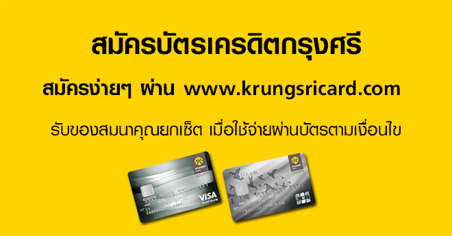 สมัครบัตรเครดิตกรุงศรี สมัครง่ายๆ ได้แล้ววันนี้ รับของสมนาคุณยกเซ็ต เมื่อใช้จ่ายผ่านบัตรตามเงื่อนไข
