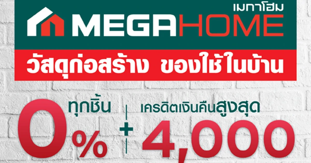 - 0% นาน 4 เดือน เมื่อซื้อสินค้าครบ 2,000 บาทขึ้นไป (ยกเว้นสินค้าหมวดวัสดุก่อสร้าง)