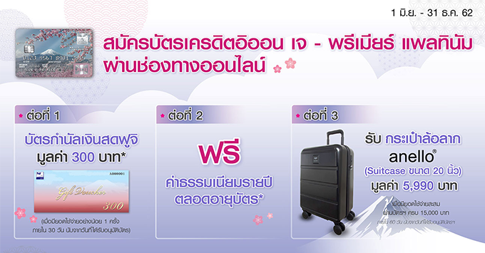 พิเศษ! เมื่อสมัครบัตรเครดิตอิออน เจ-พรีเมียร์ แพลทินัม ผ่านช่องทางออนไลน์ รับของสมนาคุณ 3 ต่อ