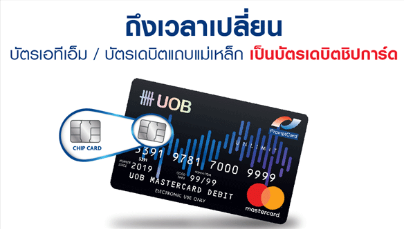 ฟรี! ค่าธรรมเนียม เปลี่ยนบัตรยูโอบีเอทีเอ็ม/บัตรเดบิต แถบแม่เหล็กทุกประเภท เป็นบัตรเดบิตชิปการ์ด