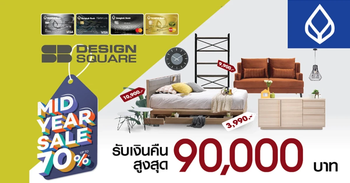 ใช้จ่ายผ่านบัตรเครดิตธนาคารกรุงเทพ ที่ SB DESIGN SQUARE รับเงินคืนสูงสุด 90,000 บาท ถึง 31 ก.ค. 62