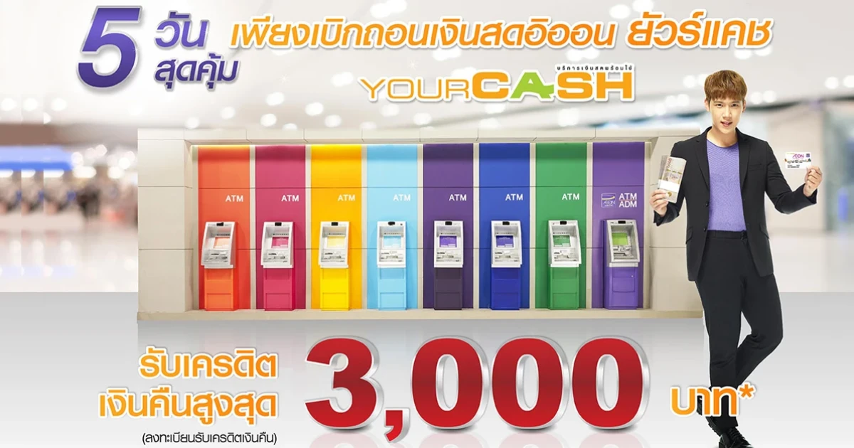 5 วันสุดคุ้ม รับเครดิตเงินคืนสูงสุด 3,000 บาท เพียงเบิกถอนเงินสดอิออน ยัวร์แคช