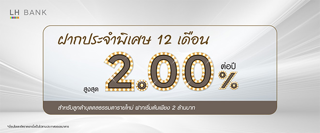 โปรโมชั่นบัญชีเงินฝากประจำพิเศษ 12 เดือน จาก LH Bank ให้ดอกเบี้ยสูงสุด 2.00% ต่อปี