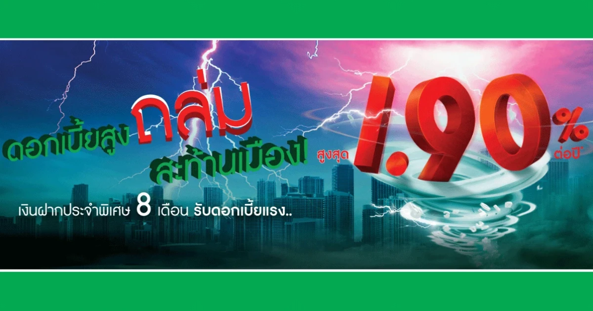 อัตราดอกเบี้ย : อัตราดอกเบี้ยสูงสุด 1.90% ต่อปี