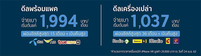 iPhone XR ของมันต้องมี! สุดยอดดีล เริ่มต้นแค่ 1,037 บาท ผ่อนเครื่องเปล่าก็ได้ พร้อมแพคก็ดี ผ่อนคุ้มชิลล์ๆ สูงสุด 24 เดือน มีเงินคืนสูง