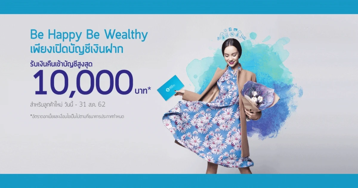 Be Happy Be Wealthy เพียงเปิดบัญชีเงินฝาก ธ.เกียรตินาคิน รับเงินคืนเข้าบัญชีสูงสุด 10,000 บาท