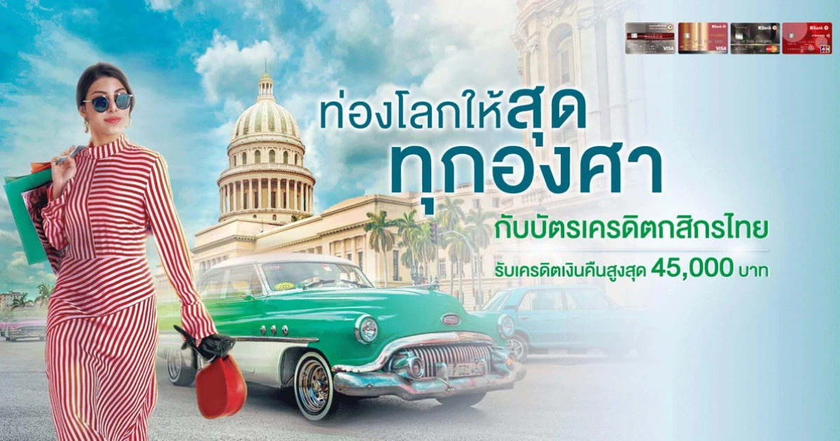ท่องโลกให้สุดทุกองศา กับบัตรเครดิตกสิกรไทย รับเครดิตเงินคืนสูงสุด 45,000 บาท