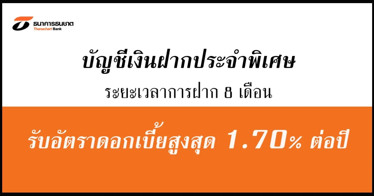 บัญชีเงินฝากประจำพิเศษ ระยะเวลาการฝาก 8 เดือน - ธ.ธนชาต