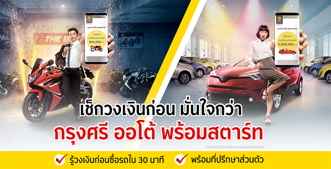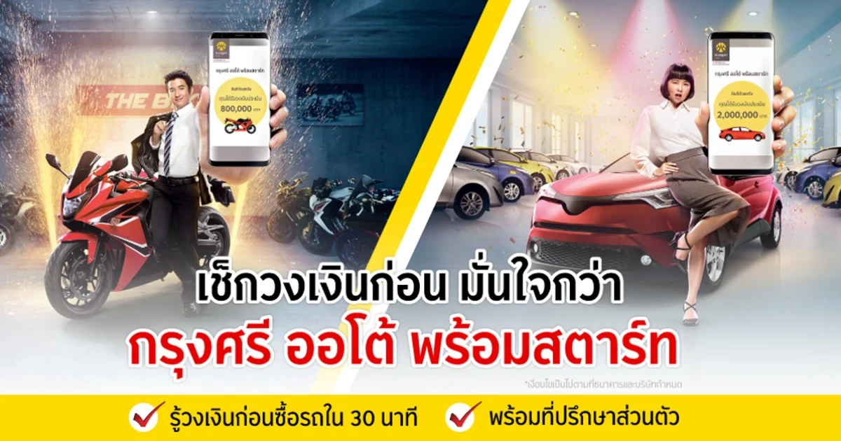 เช็กก่อน มั่นใจกว่า กับกรุงศรี ออโต้ พร้อมสตาร์ท...รู้วงเงินก่อนซื้อรถใน 30 นาที พร้อมที่ปรึกษาส่วนตัว