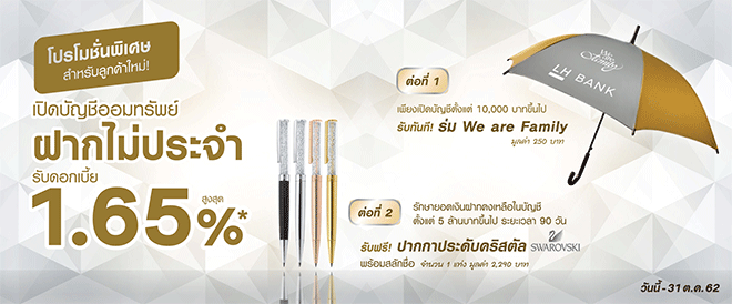 โปรโมชั่นพิเศษสำหรับลูกค้าใหม่ เปิดบัญชีออมทรัพย์ฝากไม่ประจำกับ LH Bank รับของสมนาคุณ 2 ต่อ