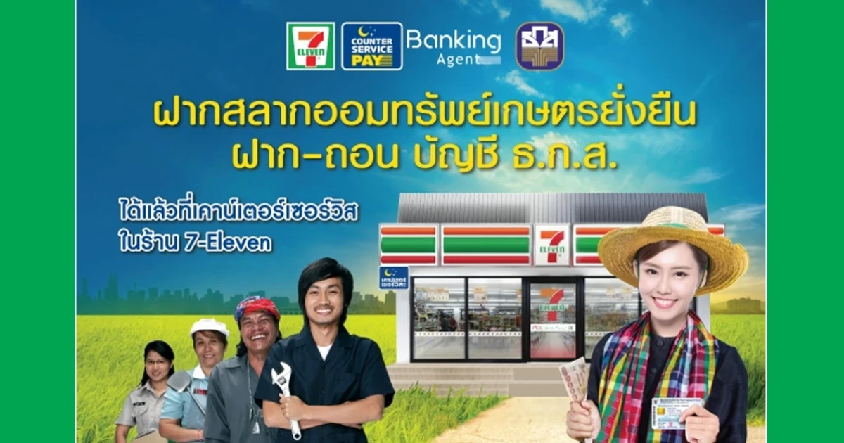 บริการใหม่!! ฝากสลากออมทรัพย์ เกษตรยั่งยืน ฝาก-ถอน บัญชี ธ.ก.ส. ชำระบิล ที่เคาน์เตอร์เซอร์วิส ในร้าน 7-Eleven ได้แล้ว