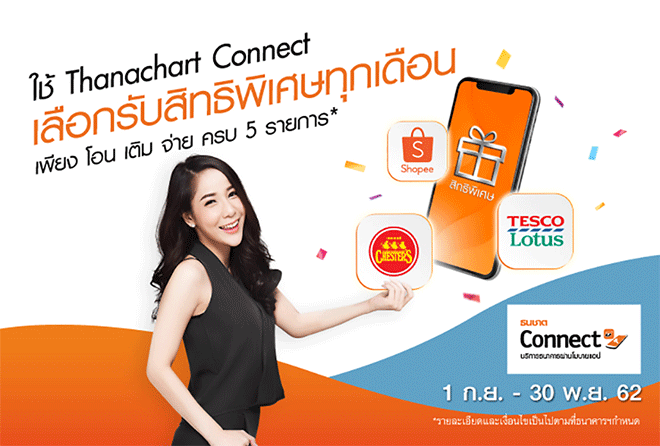 ใช้ Thanachart Connect เลือกรับสิทธิพิเศษทุกเดือน เพียง โอน เติม จ่าย ครบ 5 รายการ*