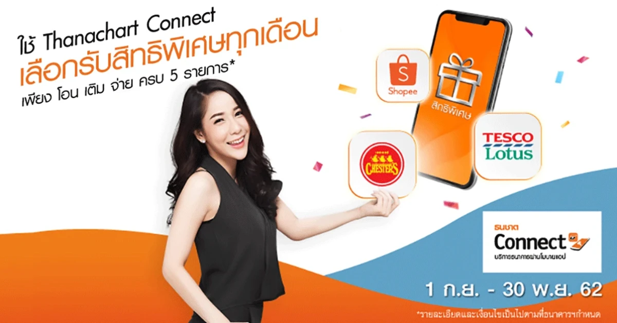 ใช้ Thanachart Connect เลือกรับสิทธิพิเศษทุกเดือน เพียง โอน เติม จ่าย ครบ 5 รายการ*