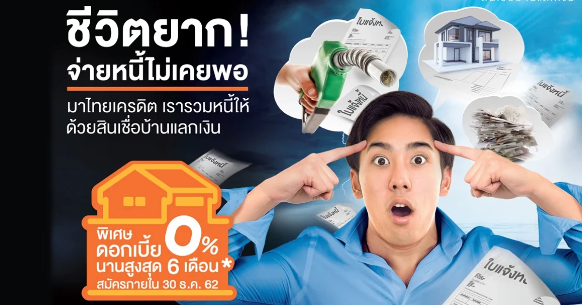 ชีวิตยาก! จ่ายหนี้ไม่เคยพอ มาไทยเครดิต รวมหนี้ให้ด้วยสินเชื่อบ้านแลกเงิน พิเศษดอกเบี้ย 0% นาน 6 เดือน