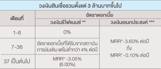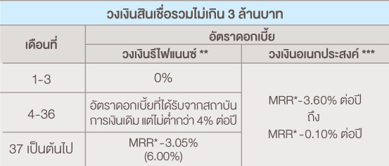 ***กรณีทำประกัน MRTA อัตราดอกเบี้ยลดลงจากปกติ 0.50% และหากมีการยกเลิกประกันภายหลัง อัตราดอกเบี้ยจะถูกปรับขึ้น 0.50%