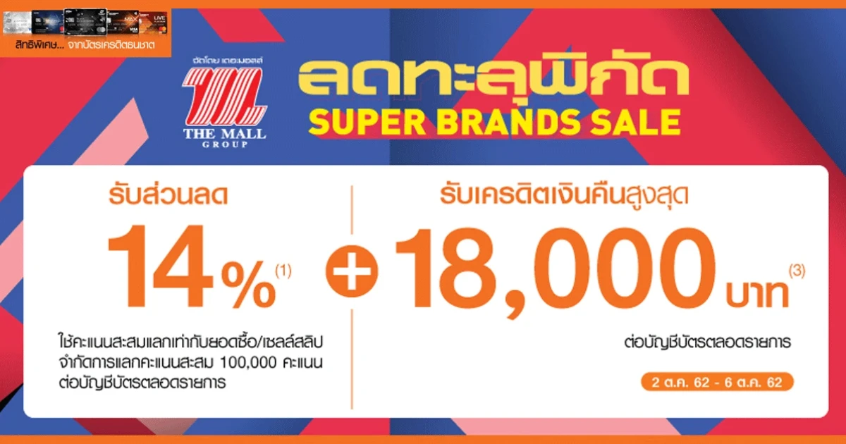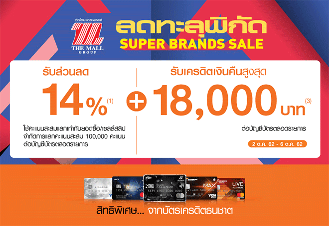 สิทธิพิเศษเฉพาะสมาชิก บัตรเครดิตธนชาต รับส่วนลด และเครดิตเงินคืน เมื่อช้อปในงาน "ลดทะลุพิกัด SUPER BRANDS SALE" ที่ห้างสรรพสินค้าเดอะมอลล์