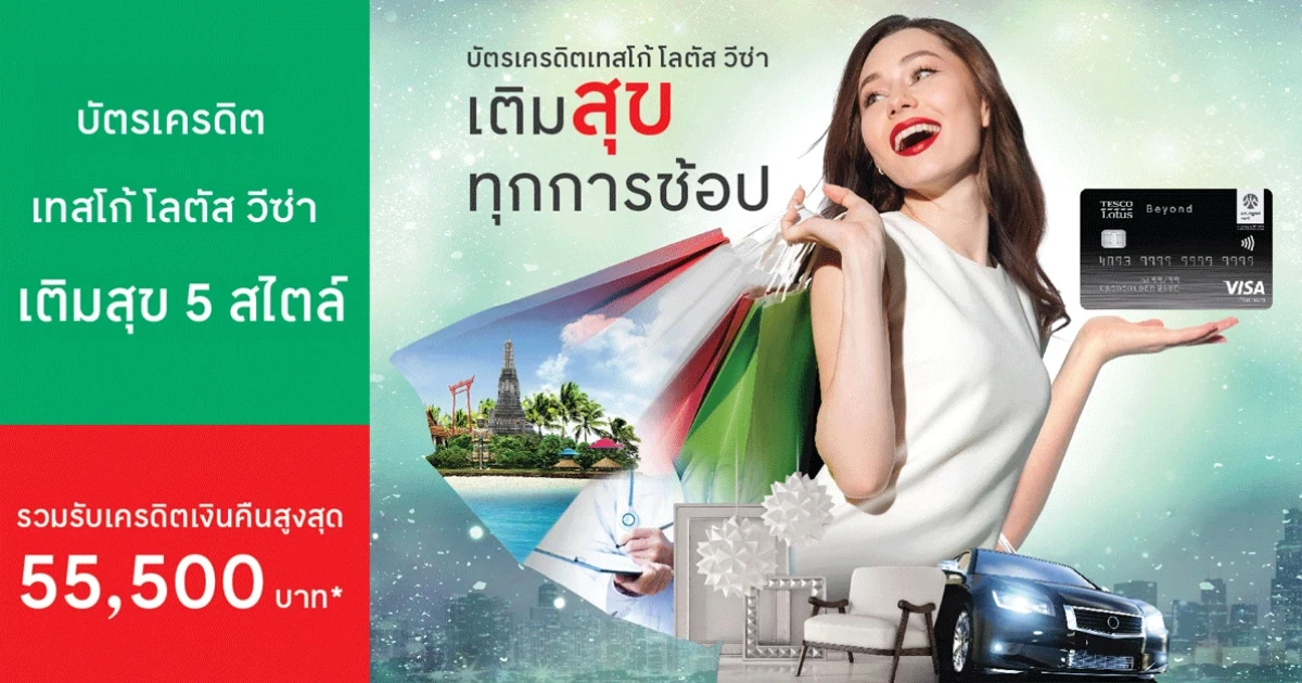 บัตรเครดิตเทสโก้ โลตัส วีซ่า ให้คุณเติมสุขทุกการช้อป รับเครดิตเงินคืนสูงสุด 55,500 บาท*