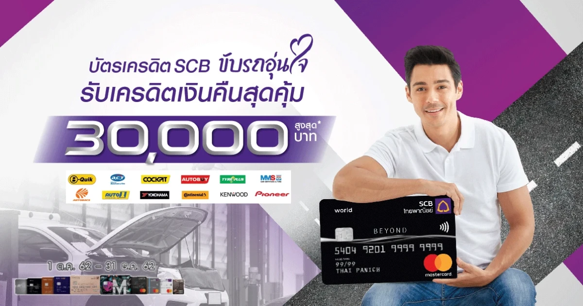สิทธิพิเศษสำหรับ บัตรเครดิตไทยพาณิชย์ รับเครดิตเงินคืนสูงสุด 30,000 บาท* เมื่อชำระค่าสินค้า/บริการ กับร้านค้าในหมวดรถยนต์ที่ร่วมรายการ