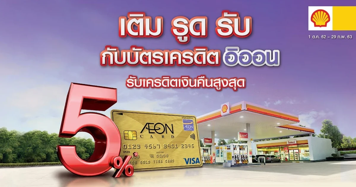 สะสมการใช้จ่ายผ่านบัตรเครดิตอิออน โกลด์ และบัตรเครดิตอิออน คลาสสิค ที่ปั๊มเชลล์ รับเงินคืนสูงสุด 5%