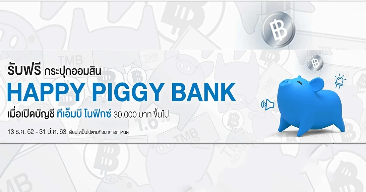 เปิดบัญชี ทีเอ็มบี โนฟิกซ์ และ ฝากเงินตั้งแต่ 30,000 บาทขึ้นไป รับฟรี กระปุก Happy Piggy Bank