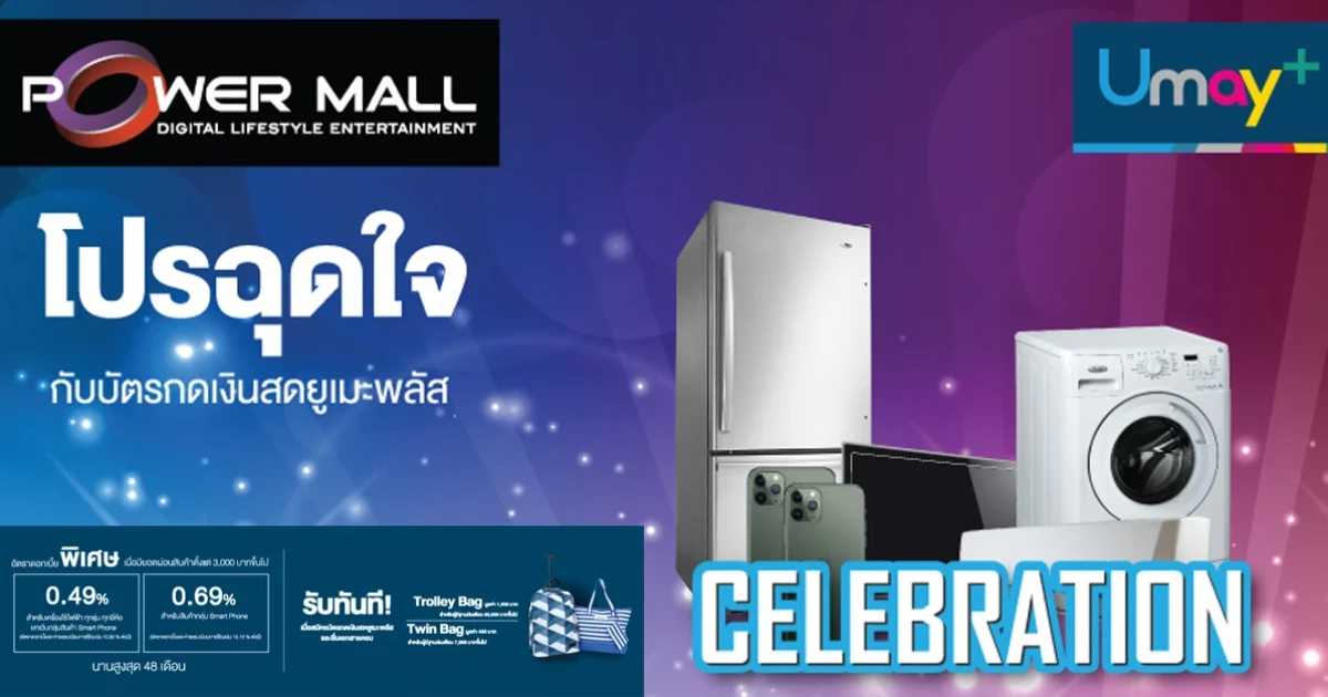 - สำหรับ Smart Phone ทุกรุ่น ทุกยี่ห้อ ไม่ต้องซื้อพร้อมแพ็กเกจ ผ่อนยาว 48 เดือน กับดอกเบี้ยพิเศษสุด ใน Power Mall ที่ The Mall ทุกสาขา