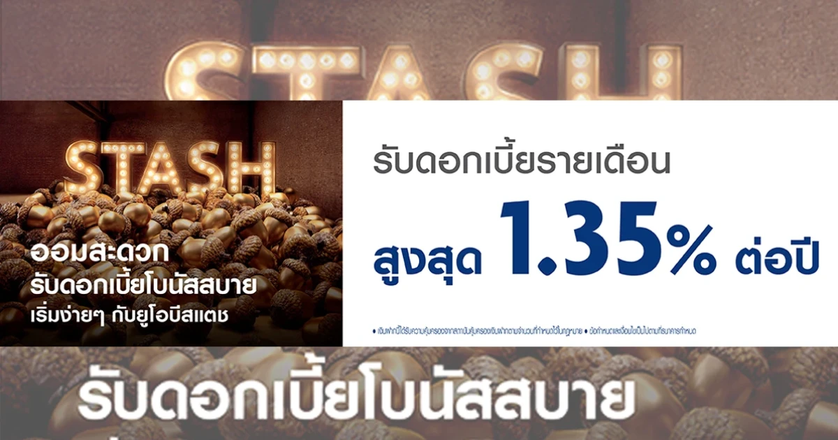 บัญชีเงินฝากออมทรัพย์ยูโอบีสแตช (UOB STASH) จากธนาคารยูโอบี อัตราดอกเบี้ยสูงสุด 1.350% ต่อปี ทางเลือกใหม่สำหรับการออมเงินกับบัญชีออมทรัพย์แบบไม่มีสมุดคู่ฝาก