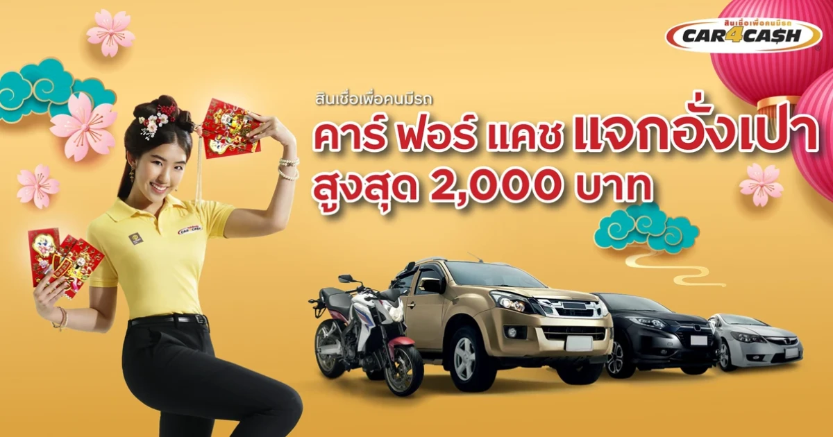 คาร์ ฟอร์ แคช แจกอั่งเปา สูงสุด 2,000 บาท...เอาใจเจ้าของรถยนต์และบิ๊กไบค์ ฉลองตรุษจีน รับวงเงินสูง ดอกเบี้ยต่ำ และอั่งเปา มูลค่าสูงสุด 2,000 บาท