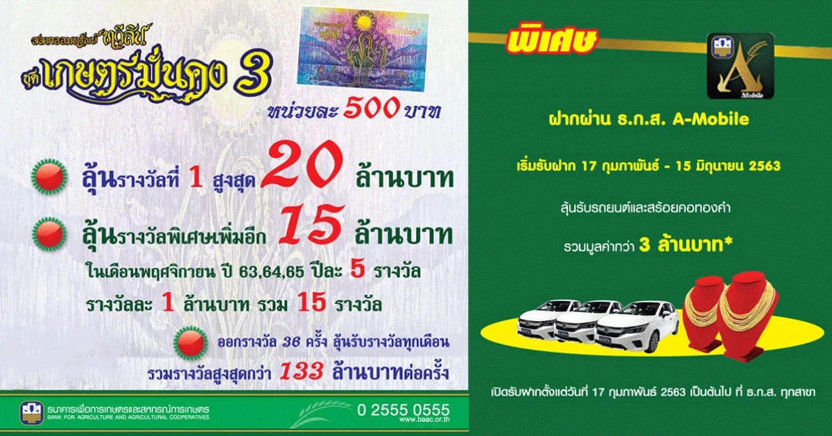 สลากออมทรัพย์ทวีสิน ชุดเกษตรมั่นคง 3 จาก ธ.ก.ส.