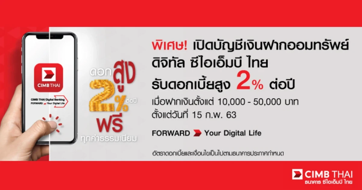 เปิดบัญชีออมทรัพย์ ดิจิทัล ซีไอเอ็มบี ไทย วันนี้ !! รับดอกเบี้ยสูง 2% ต่อปี*
