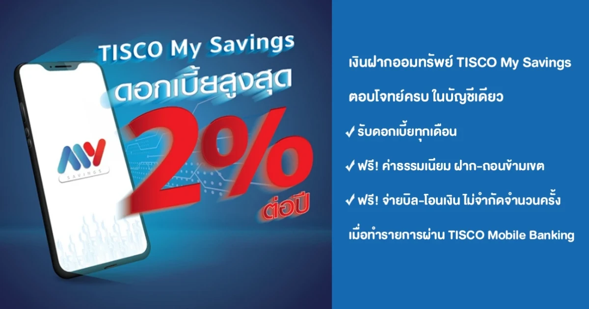 บัญชี TISCO My Savings ตอบโจทย์ครบในบัญชีเดียว พร้อมรับดอกเบี้ยสูงสุด 2.00% ต่อปี