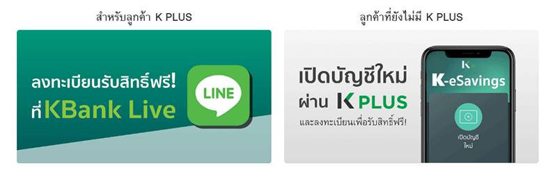 - ลูกค้า 1 หมายเลขบัตรประชาชน ต่อ 1 สิทธิ์เท่านั้น โดยสมัคร K PLUS และ ลงทะเบียนรับสิทธิ์ผ่าน Line KBank Live ภายในวันที่ 29 ก.พ. - 15 มี.ค. 63