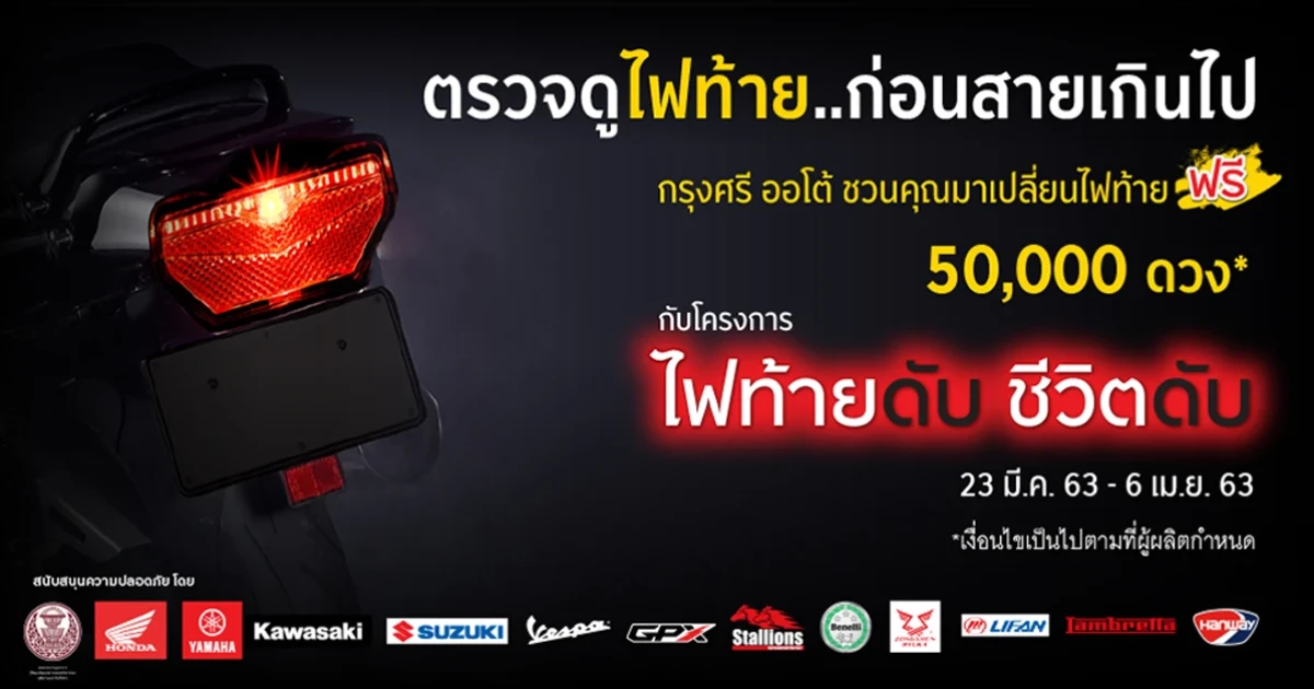 LET'sponsible "ไฟท้ายดับ ชีวิตดับ" กรุงศรี ออโต้ เดินหน้าชวนเปลี่ยนไฟท้ายฟรี 50,000 ดวง ทั่วประเทศ