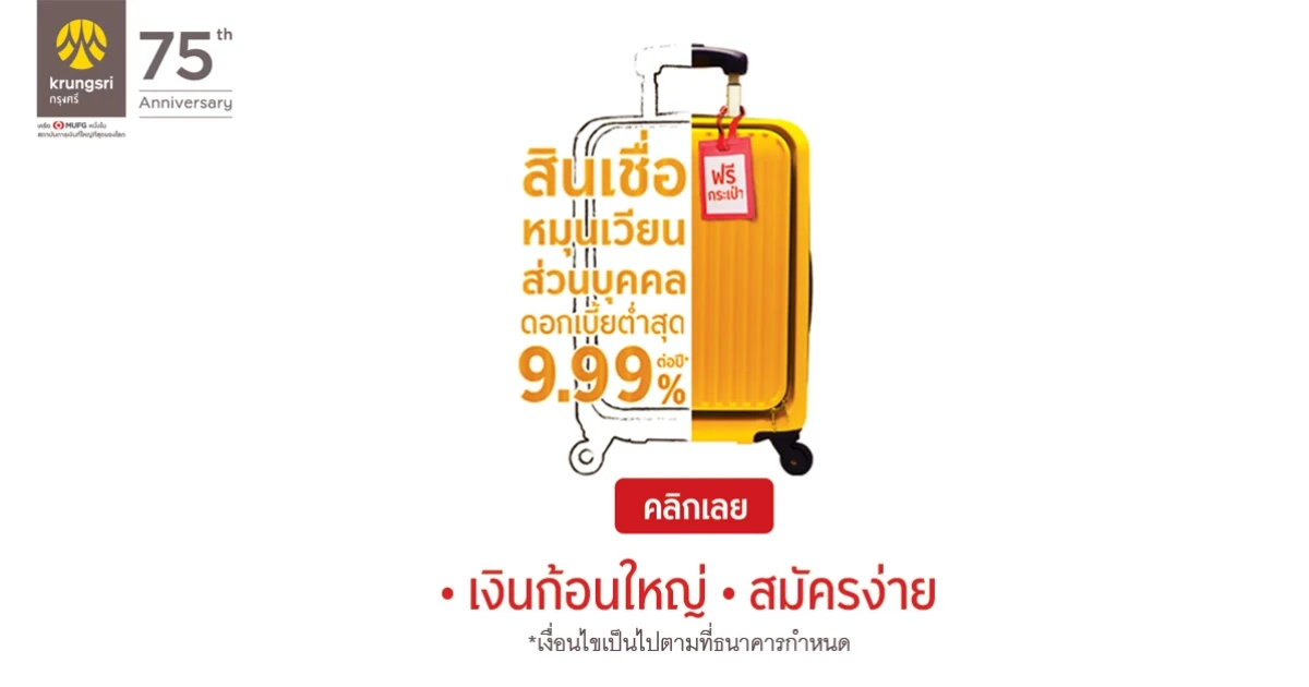 สินเชื่อหมุนเวียนส่วนบุคคล ธ.กรุงศรี ดอกเบี้ยต่ำสุด 9.99% ต่อปี