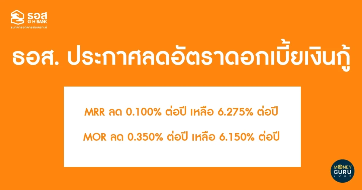 ธนาคารอาคารสงเคราะห์ (ธอส.) ประกาศปรับลดอัตราดอกเบี้ยเงินกู้ลง 0.100% - 0.350% ต่อปี เพื่อลดภาระค่าใช้จ่ายดอกเบี้ยของสินเชื่อที่อยู่อาศัยให้กับลูกค้าประชาชน ประกอบด้วย อัตราดอกเบี้ย MRR ลดลงเหลือ 6.275% ต่อปี และอัตราดอกเบี้ย MOR ลดลงเหลือ 6.150% ต่อปี โดยมีผลบังคับใช้ตั้งแต่วันที่ 27 มีนาคม 2563 เป็นต้นไป