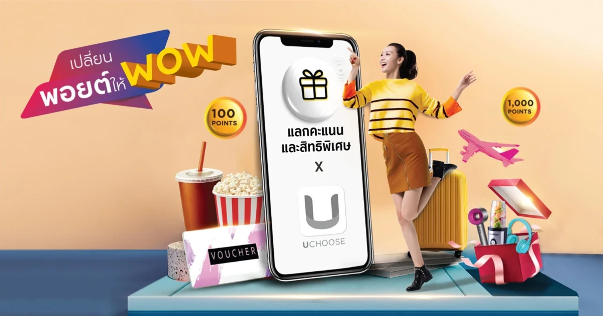 แหล่งแลกพอยต์ ผ่านแอปฯ UChoose สิทธิพิเศษสำหรับสมาชิกบัตรเครดิต กรุงศรี, บัตรเครดิต โฮมโปร วีซ่า แพลทินัม, บัตรเครดิต เอไอเอ วีซ่า, และบัตรเครดิต สยามทาคาชิมายะ