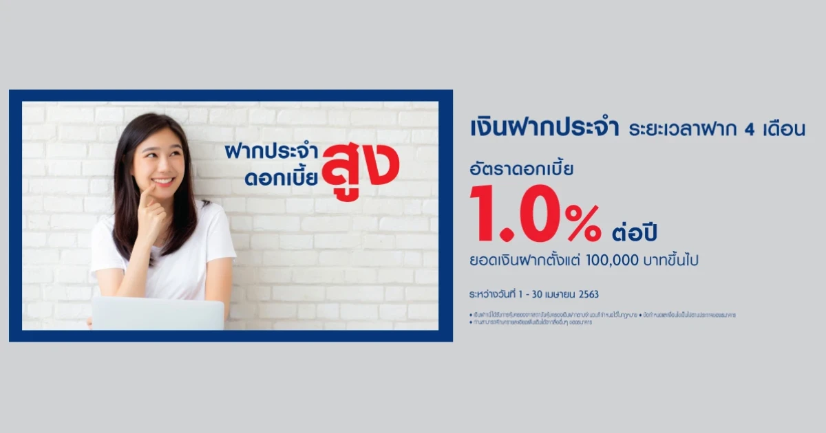 ช่วงเวลาที่เปิดรับฝาก : ตั้งแต่วันที่ 1 - 30 เมษายน 2563
