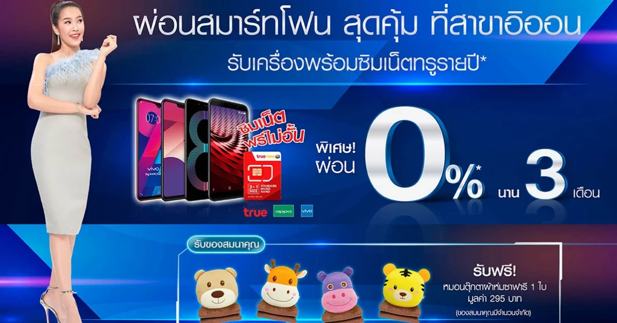 ผ่อนสมาร์ทโฟน สุดคุ้ม ที่สาขาอิออน พิเศษผ่อน 0% นาน 3 เดือน รับเครื่องพร้อมซิมเน็ตทรูรายปี