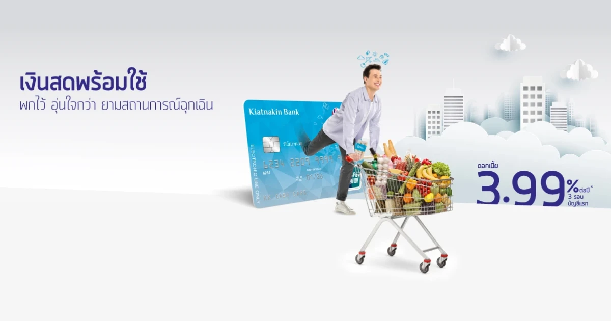 เงินสดพร้อมใช้ ดอกเบี้ยพิเศษ 3.99% ต่อปี 3 รอบบัญชีแรก จากธนาคารเกียรตินาคิน