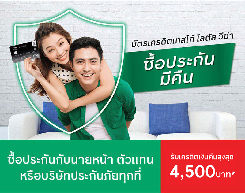 ซื้อประกัน กับบัตรเครดิตเทสโก้ โลตัส วีซ่า รับเครดิตเงินคืนสูงสุด 4,500 บาท*