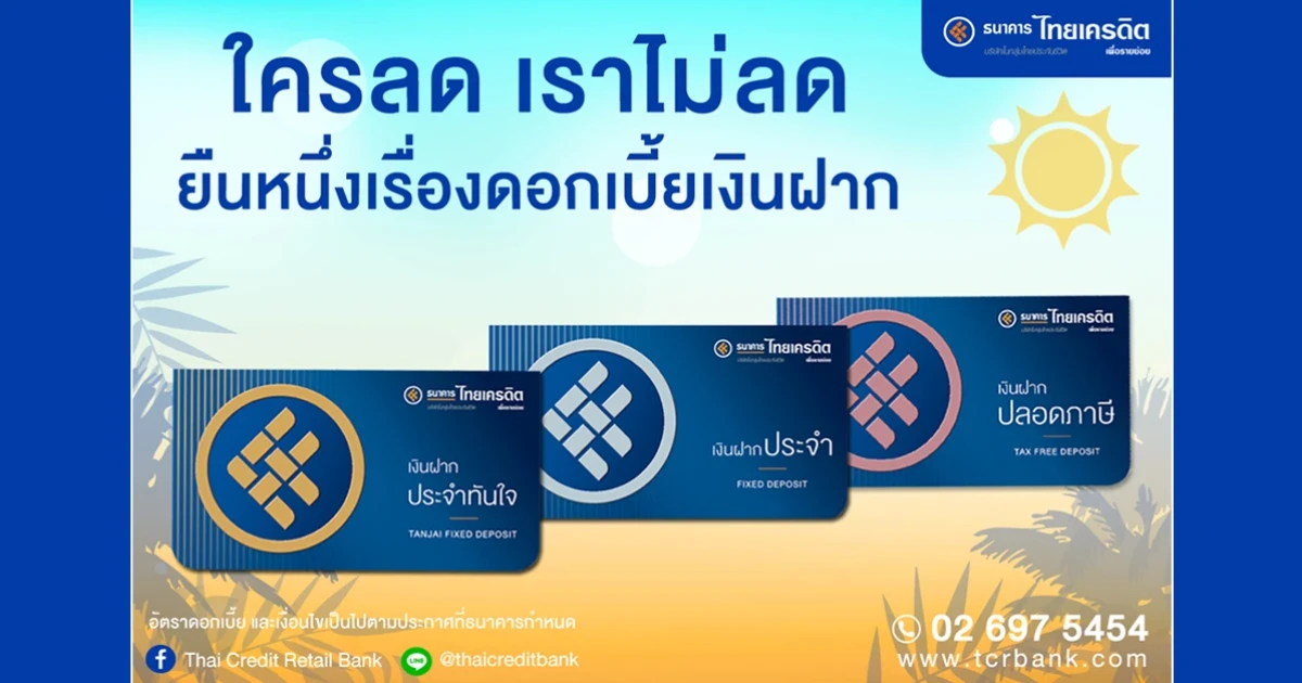 โปรโมชั่นบัญชีเงินฝากไทยเครดิต...ใครลด เราไม่ลด ยืนหนึ่งเรื่องดอกเบี้ยเงินฝาก สูงสุดถึง 2.85% ต่อปี*