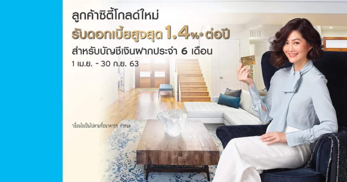 สิทธิพิเศษสำหรับลูกค้าซิตี้โกลด์ใหม่ รับอัตราดอกเบี้ยสูงสุด 1.40%*ต่อปี สำหรับเงินฝากประจำ 6 เดือน
