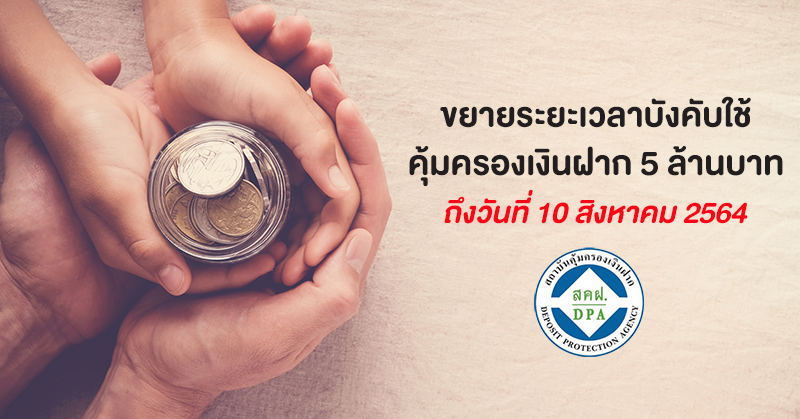 ในการประชุมคณะรัฐมนตรี เมื่อวันที่ 7 เมษายน 2563 ได้มีมติให้ความเห็นชอบในการ ขยายระยะเวลาบังคับใช้วงเงินคุ้มครองเงินฝาก จำนวน 5 ล้านบาท จากเดิมถึงวันที่ 10 สิงหาคม 2563 ขยายระยะเวลาถึงวันที่ 10 สิงหาคม 2564 เนื่องจากสถานการณ์การระบาดของโรคติดต่อเชื้อไวรัสโคโรนา 2019 ได้รับการประกาศจากองค์การอนามัยโลกให้เป็นภาวะการระบาดใหญ่ทั่วโลก และส่งผลกระทบเป็นวงกว้างต่อนานาประเทศทั้งในเชิงเศรษฐกิจและสังคม รวมถึงทำให้เกิดความผันผวนในตลาดเงิน ตลาดทุน และระบบการเงินทั่วโลกรวมถึงประเทศไทย